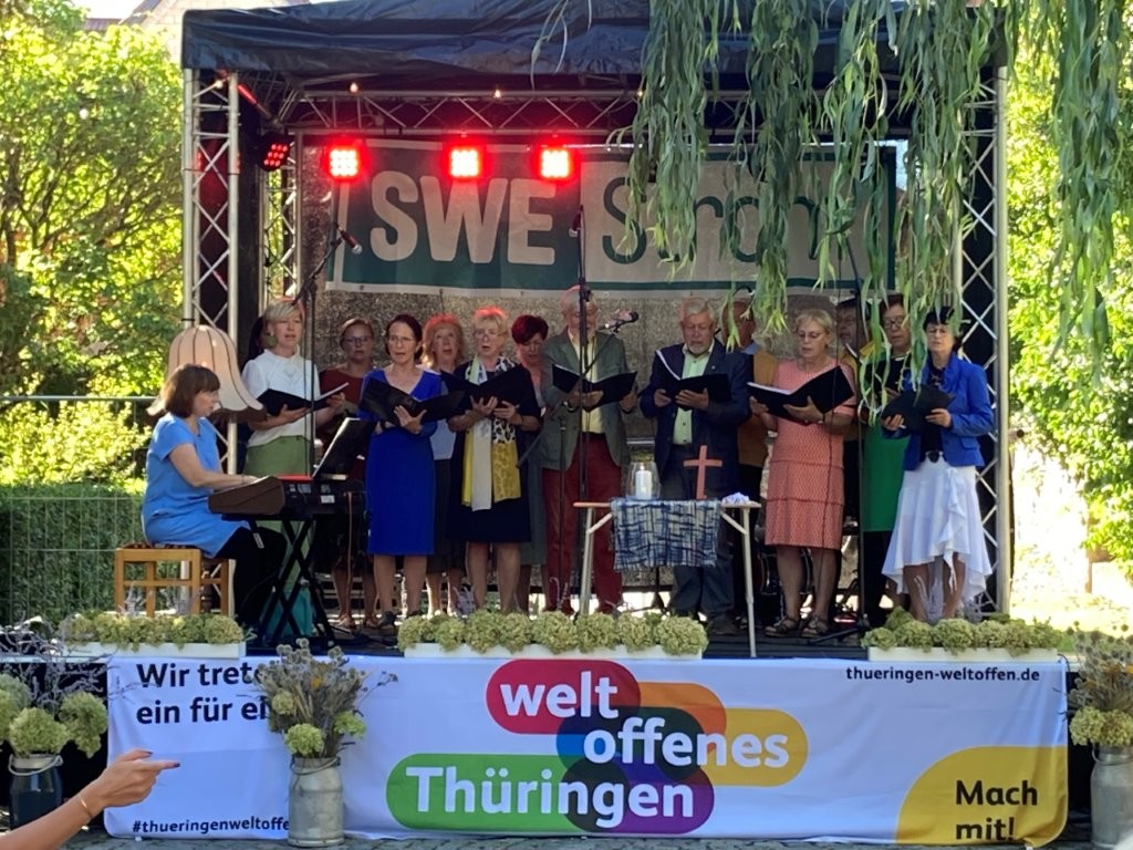 Zum Kunstfest 2013 startete auch eine Radwanderung vieler Erfurte Gemeinden in die Tiefthaler Kirche.